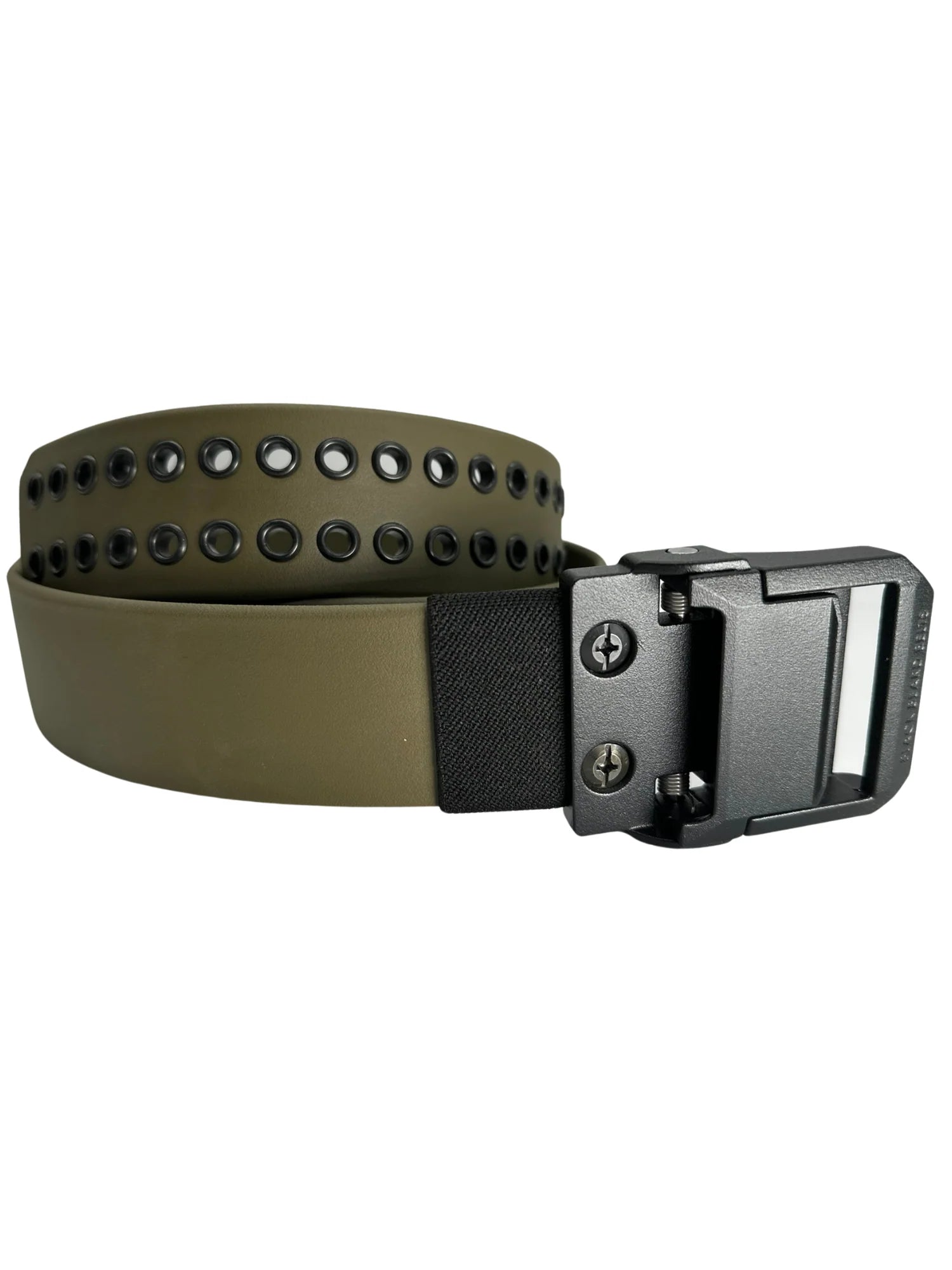 The buckle is based on our popular Ranger 304 SS buckle, however, it is fully constructed of aluminum for weight reduction and strength, while the pins and springs that hold the components together remain stainless steel. Once mated with our polymer coated strap this combination makes for a nearly indestructible belt. The spring-loaded cover contains a dual drop pin design which provides a more positive locking engagement.