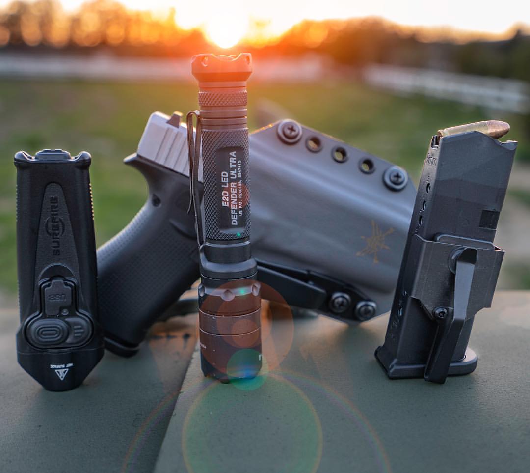 Surefire, E2D LED Defender Ultra Flashlight, Dual-Output LED, 1000 Lumens, Dual-output Tailcap Click Switch, Strike Bezel, 2x CR123 Batteries, Black
